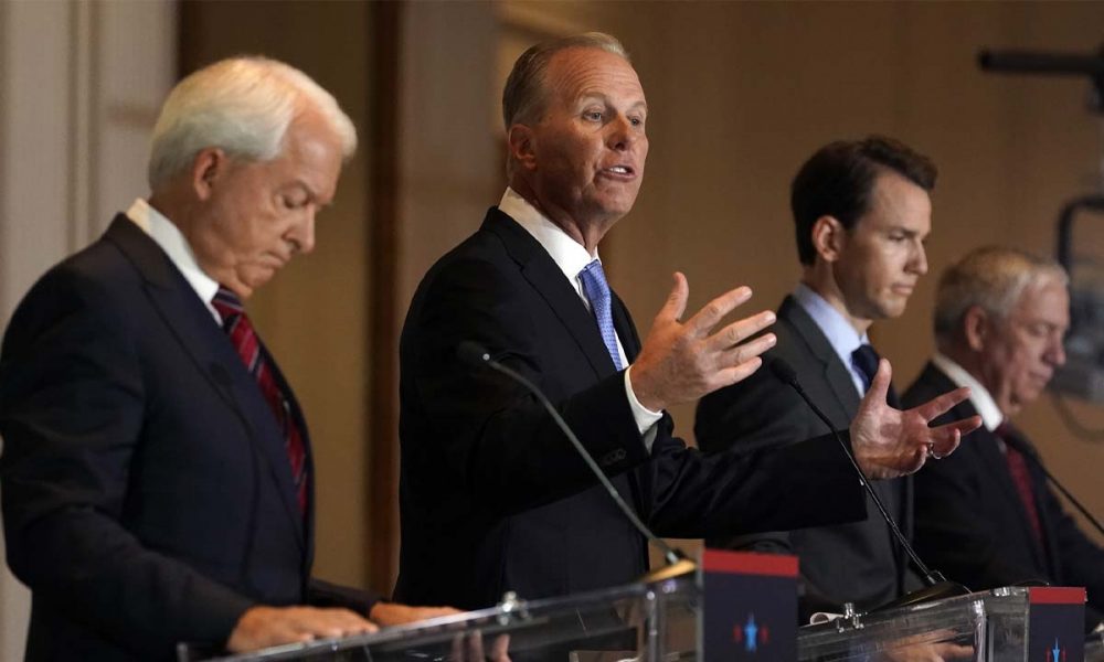 Alongside FOX 11 anchors Christine Devine and Elex Michaelson, the debate was moderated by Hewitt and Trump national security advisor Robert C. O’Brien. The latter two steered the conversation toward favorite conservative hot-button issues that aren’t as relevant in California. Those included the teaching of “critical race theory” in schools, the role of Mexican drug cartels in fomenting the country’s opioid crisis and the various crimes of the Chinese Communist Party.